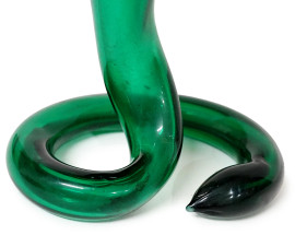 Vaso in vetro verde a forma di campanula, XX secolo, Murano, altezza cm 26,3