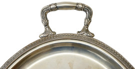 Vassoio in argento cesellato, Ricci&C., XX secolo, cm 45,5x27,5, peso gr. 680, (difetti)