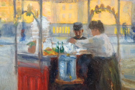 Venditrice di limonate, olio su tavola, cm 26,5x37, XX secolo, entro cornice