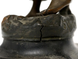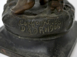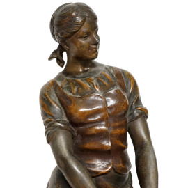 A.J. Scotte (1885-1905), Les vendanges, metallo brunito, Francia, XX secolo, firmato, altezza cm 44