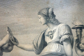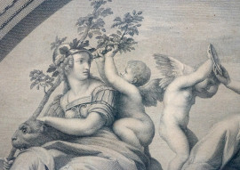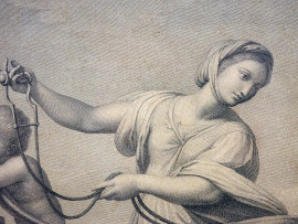 ALLEGORIA DELLE VIRTU' CARDINALI, acquaforte da Raffaello Sanzio (1483-1520), incisori: Giovanni Volpato (1735-1803) e Morghen Raffaello (1758-1833), disegnatore: Stefano Tofanelli (1752-1812), cm 45x79, entro cornice, (difetti e macchie)