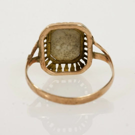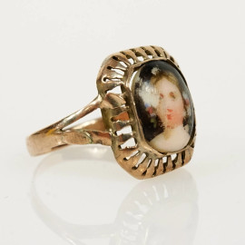 Anello in oro basso con miniatura in porcellana raffigurante ritratto di nobildonna, misura n. 13, peso gr. 1,6, (imperfezioni)