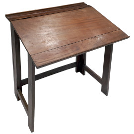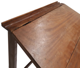 Antico piccolo scrittoio richiudibile in noce nazionale massello degli anni 30, piano inclinato e scanalatura porta matite, cm 59x41x76