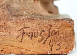 Anziana contadina, scultura in terracotta, cm h 30,5, firmata e datata Fous Jan '43, (lievi difetti)