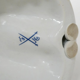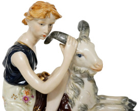 Ariete e Teofane, scultura in porcellana policroma, XX secolo, marca sotto la base, altezza cm 29