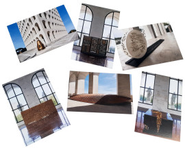 Arnaldo Pomodoro Collezione completa di 6 cartoline realizzate in occasione della mostra” Il grande teatro della civiltà” tenutasi a Roma al Palazzo della Civiltà Italiana e sponsorizzata da Fendi