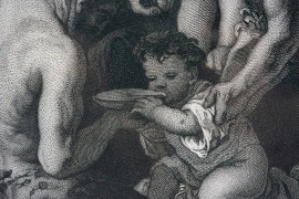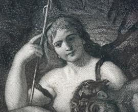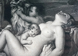 Baccanale, da Nicolas Poussin (1594 - 1665), incisione di Alphonse Masson (1814 - 1898), cm 89x62 circa, entro cornice, (macchie)