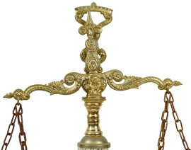 Bilancia in cristallo e metallo dorato, cm h 53.5, XX secolo, (mancanze e difetti)