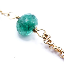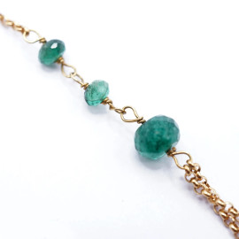 Bracciale con anello in oro 18 Kt e 7 smeraldi, cm 18,7, lunghezza totale cm 20, peso gr. 3