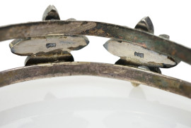 Bracciale rigido in argento decorato con fiori in pasta turchese, cm 15,5 circa, peso lordo gr. 29,5