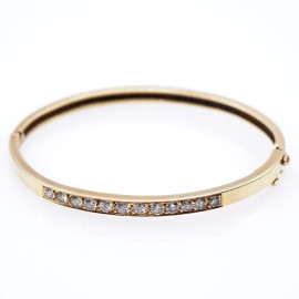Bracciale rigido in oro 18 KT con 12 brillantini, lunghezza cm 16,5 circa, peso gr. 15