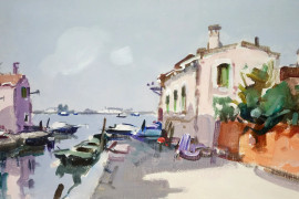 Burano, tecnica mista su tela, cm 35x50, firmato, entro cornice