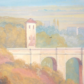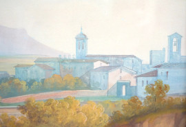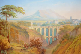 Carl Martin Laeisz (1803-1864), Civita Castellana, acquerello su carta, firmato e datato in basso a destra C. Laeisz [18]46, cm 53,5x74,5