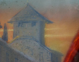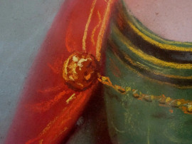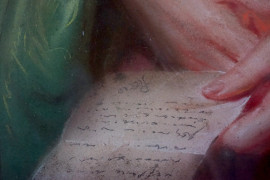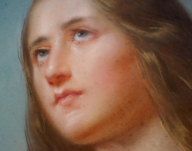 Fanciulla con lettera, pastello su carta, cm 86x62, entro cornice, (macchie)