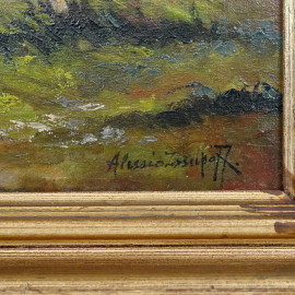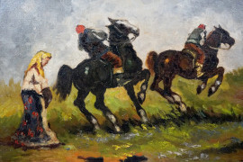 Cavalli e figure, olio su tela, firmato e datato in basso a destra, cm 30x40, entro cornice.