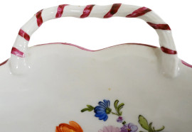 Cestino in porcellana a smalto bianco con decori floreali policromi, Dresda, XX secolo, cm 125x26,5