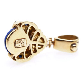 Ciondolo a foggia di coccinella in oro 18 KT, brillantini e lapislazzulo, cm 4,3, peso gr. 14,3