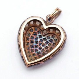 Ciondolo a forma di cuore in oro 18 Kt e argento con zaffiri e scaglie di diamante, cm 3,5, peso gr. 7