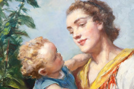 Cipriano Mannucci (Nizza, 1882 - Firenze, 1970), Maternità, olio su masonite, firmato in basso a sinistra, cm 80x71, entro cornice (difetti)
