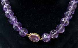 Collana in ametista sfaccettata con chiusura in oro 18 Kt, lunghezza cm 54, (difetti)