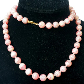 Collana in rodocrosite con chiusura in oro 18 kt, lunghezza cm 77