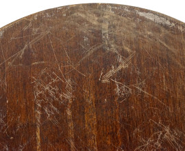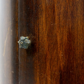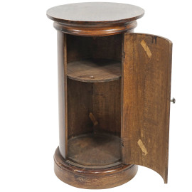 Comodino a colonna a uno sportello, XX secolo, altezza cm 68, diametro cm 37 (difetti, graffi sul piano).