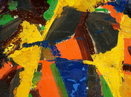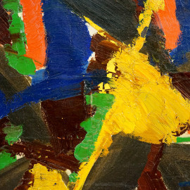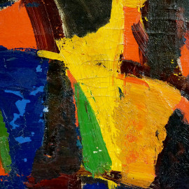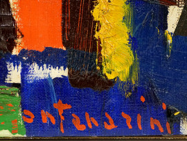 Composizione, olio su tela, cm 68x46.5, firmato Montanarini, entro cornice, (cadute di colore diffuse)