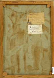 Recante etichette della galleria d'arte "La fontanella di Roma" e della "2° Mostra d'arte a Rapallo Luglio-Agosto del 1960".