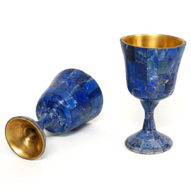 Coppia di calici in bronzo e lapislazzulo, cm h 12