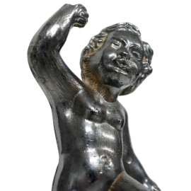 Coppia di candelieri in metallo argentato con figura di putto, altezza cm 32,5