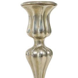 Coppia di candelieri in metallo argentato, XX secolo, altezza cm 25