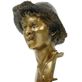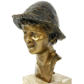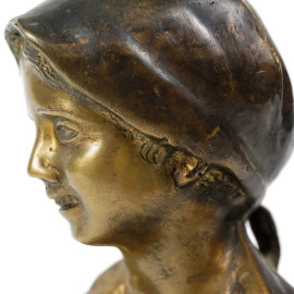Coppia di scultura in bronzo raffiguranti uno scugnizzo ed una popolana, cm h 16.5, XX secolo, poggianti su basi in marmo, altezza totale cm 25