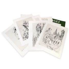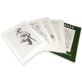 Corrado Cagli, Disegni per la Libertà, cartella contenente 18 stampe artistiche di disegni del Maestro più due fogli di appendice prodotta in serie limitata dal Comune di Umbertide nel 1987, i disegni raccolti per questa rassegna sono stati eseguiti tra il 1940 e il 1945, cm 55x40 entro cartella originale, [..]