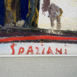 Corrado Spaziani (Castel Ritaldi 1921 - 1986), Il somarello nero, olio su masonite, cm 60x80, entro cornice