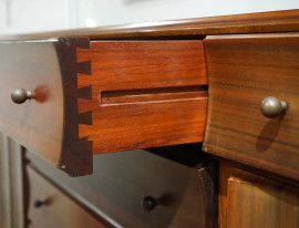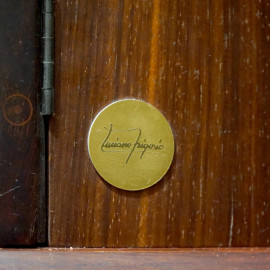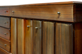 Credenza in legno Padouk di Luciano Frigerio (Desio, 1928 – Sanremo, 1999), anni '70, cm 80x280x50,5, (difetti)