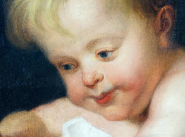 Da Antoon van Dyck (Anversa, 1599 – Londra, 1641), Sant'Anna con il Bambino, olio su tela, XIX secolo, cm 52x31, entro cornice
