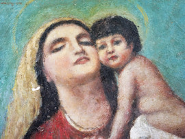 Da Domenico Morelli (1823–1901), Mater purissima, olio su cartone, cm 33x25.5, XX secolo, entro cornice