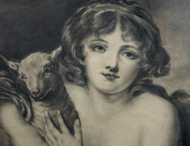 Da Jean-Baptiste Greuze (Tournus, 1725 – Parigi, 1805), L'innocenza, matita su carta, cm 41,5x53, entro cornice