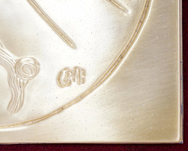 Il calciatore, lastra in argento dorato, cm 15x15, entro passepartout
