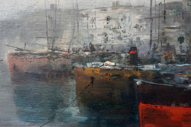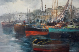 Porticciolo, olio su tavoletta, cm 15x20, entro cornice