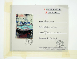 Enrico Muscetra (1946), Senza titolo, tecnica mista su carta, firmato in basso a sinistra, cm 29,5x20,7