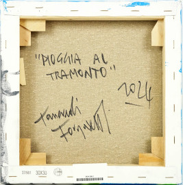 Pioggia al tramonto, tecnica mista su tela, 2024, cm 30x30