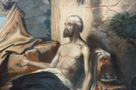 Giobbe sul letamaio, stampa a colori, E. David lith., XIX secolo, cm 49x60,5, entro cornice