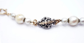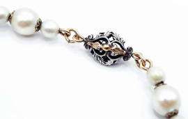 Girocollo in oro 18 Kt, argento, perle e brillantini, lunghezza cm 42,5, peso gr. 33 (mancanze)