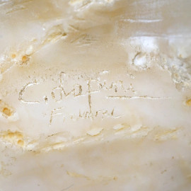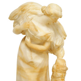 Gruppo in marmo rappresentante una contadina con una pecorella, firmato C. dapini / Firenze, altezza cm 44