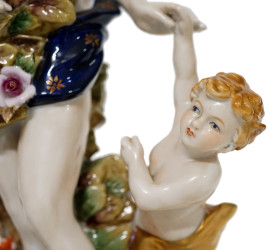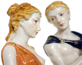 Gruppo in porcellana policroma raffigurante Orfeo ed Euridice, XX secolo, altezza cm 37