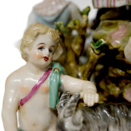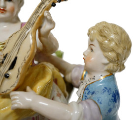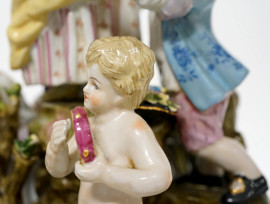 Gruppo in porcellana policroma raffigurante una scena di festa, XX secolo, altezza cm 35