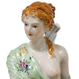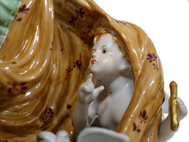 Gruppo in porcellana rappresentante Venere e Cupido con colombe, XX secolo, marchio sotto la base, altezza cm 32