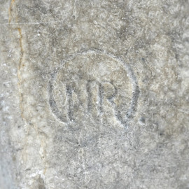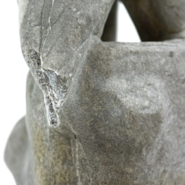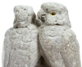 Gruppo scolpito in pietra raffigurante tre pappagalli, siglato N.R., altezza cm 22, (difetti)