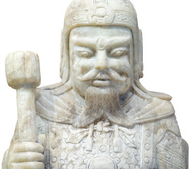 Guerriero, grande scultura in giadeite, arte orientale del XX secolo, cm h 99 circa, (difetti)